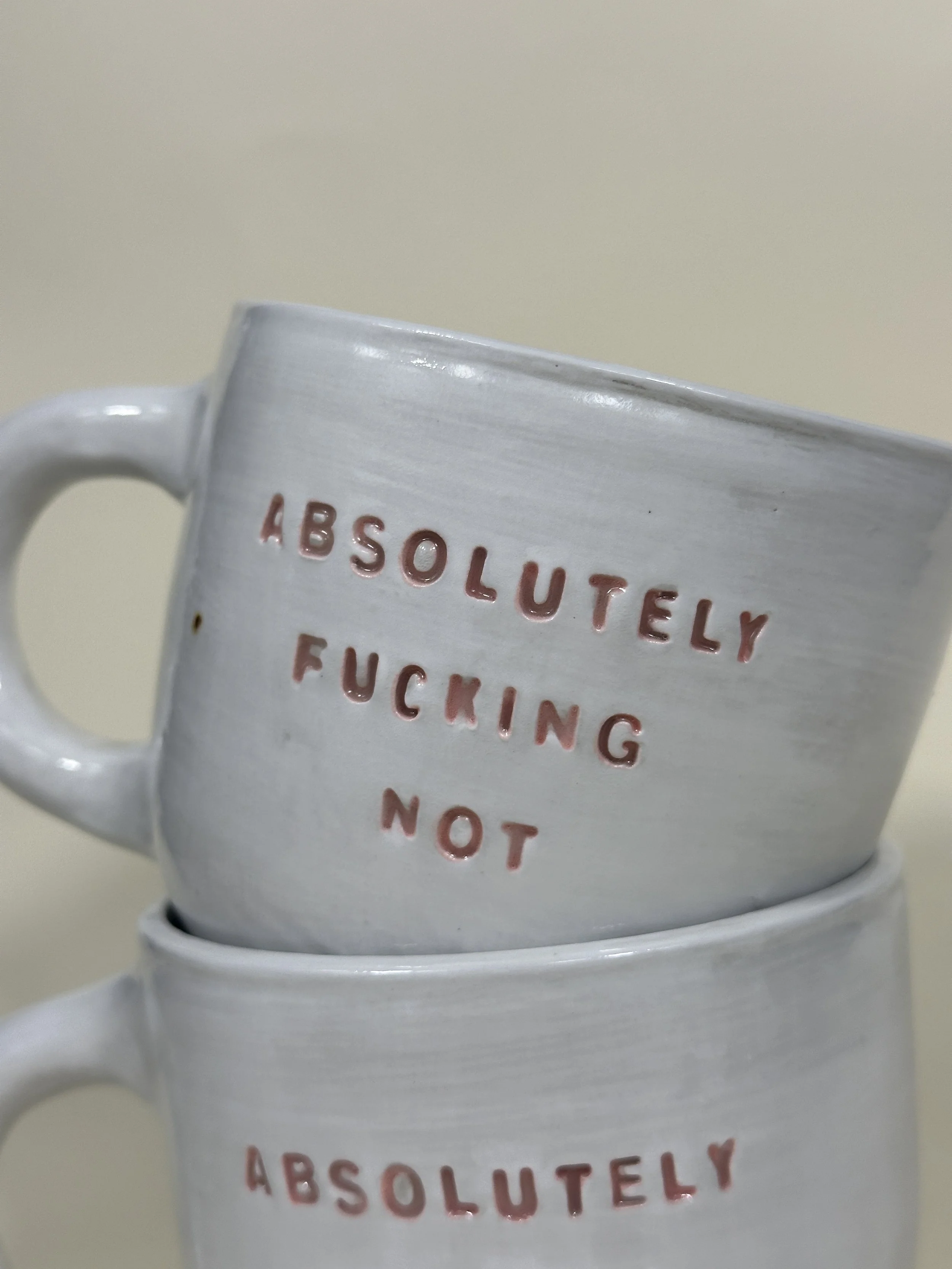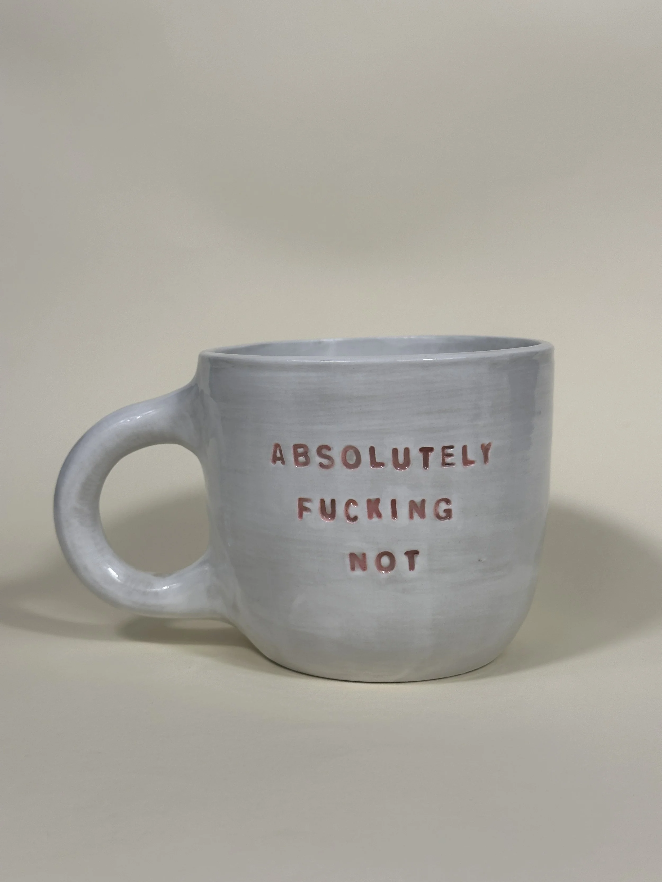 shop Categories: All mugs vases trinket dishes & bowls sexism & misogyny range All mugs vases trinket dishes & bowls sexism & misogyny range christmas mug - gingham $70.00 christmas mug - candy cane $70.00 titty mug $75.00 'DELULU WITH NO SOLULU' mug $70.00 'FUCK OFF' mug $70.00 Sold out 3D heart mug - pink $75.00 heart mug $70.00 'SHIT' mug $70.00 Sold out 'FUCK' mug $70.00 Sold out 'CUNT' mug $70.00 Sold out 'BITCH' mug $70.00 Sold out gingham mug $70.00 daisy mug $70.00 'Absolutely Fucking Not' mug - white $70.00 Sold out 'Absolutely Fucking Not' mug - pink $70.00 Sold out boulder mug $80.00 Sold out heart vase $130.00 bubble vase - pink speckle $130.00 bulb vase - green $130.00 pink & blue gingham vase $130.00 daisy half-lid keep cup $70.00 rainbow half-lid keep cup $70.00 Sold out pink flower half-lid keep cup $70.00 gingham half-lid keep cup $70.00 heart trinket dish $65.00 pink speckle trinket dish - wavy $65.00 white speckle trinket dish $65.00 heart dish $70.00 terracotta latte cup $65.00 checkered latte cup - blue $65.00 checkered latte cup - pink $65.00 daisy latte cup - white $65.00 daisy latte cup - pink $65.00 3D heart mug - white $75.00 3D flower mug $75.00 pink speckle trinket dish - round $65.00 heart bowl $65.00 white speckle trinket dish - wavy $65.00 pink speckle trinket dish $65.00 checkered vase $100.00 daisy vase $130.00 flower vase - pink $120.00 flower vase - white $120.00 pink flower mug $70.00 terracotta vase $110.00 heart planter $75.00 bubble vase - pink hearts $120.00 bubble vase - yellow hearts $120.00 bubble vase - white hearts $120.00 bubble vase - white speckle $130.00 ring dish - daisies $40.00 Sold out ring dish - pink $40.00 ring dish - hearts $40.00 white speckle trinket dish - round $65.00 heart half-lid keep cup $70.00 blue-grey vase $115.00 pink speckle mug $70.00 bouquet vase - green $130.00 bouquet vase - pink speckle $120.00 blossom vase - white speckle $120.00 green vase $100.00 round vase - pink speckle $130.00 sexism & misogyny mug - green $80.00 Sold out sexism & misogyny mug - pink $80.00 Sold out sexism & misogyny mug - white $80.00 Sold out sexism & misogyny half-lid keep cup $80.00 Sold out sexism & misogyny mug - red writing $80.00 Sold out sexism & misogyny mug - blue writing $80.00 Sold out 'BEST FUCKING DAD' mug $70.00 Sold out 'DAD' mug - green checkers $70.00 'DAD' mug - blue checkers $70.00 Sold out PRE-ORDER snack platter $160.00 Sold out PRE-ORDER - sexism & misogyny vase $200.00 PRE-ORDER - sexism & misogyny mug $80.00 CUSTOM ORDERS ♡ CUSTOM ORDERS ♡ CUSTOM ORDERS ♡ custom order form