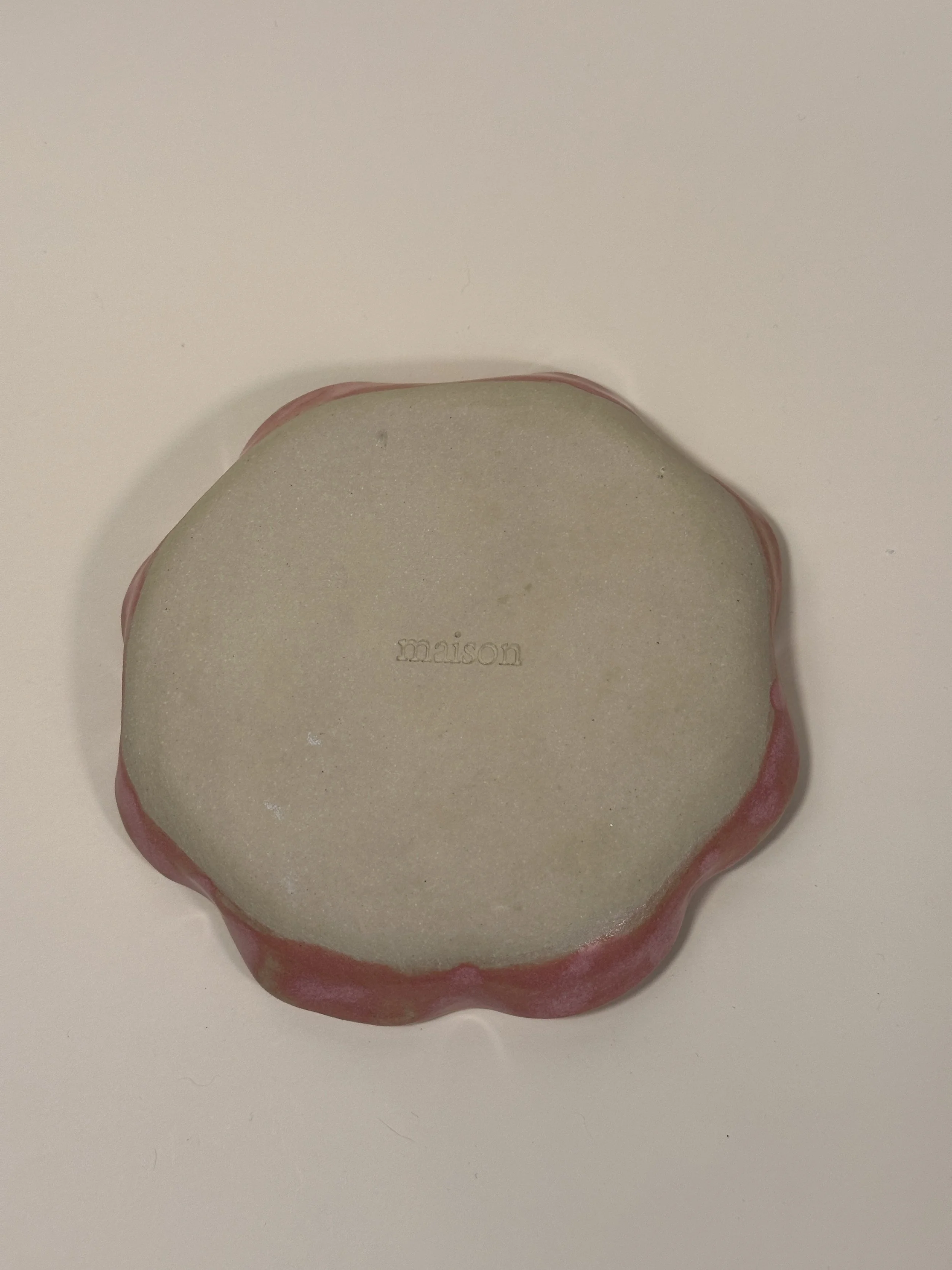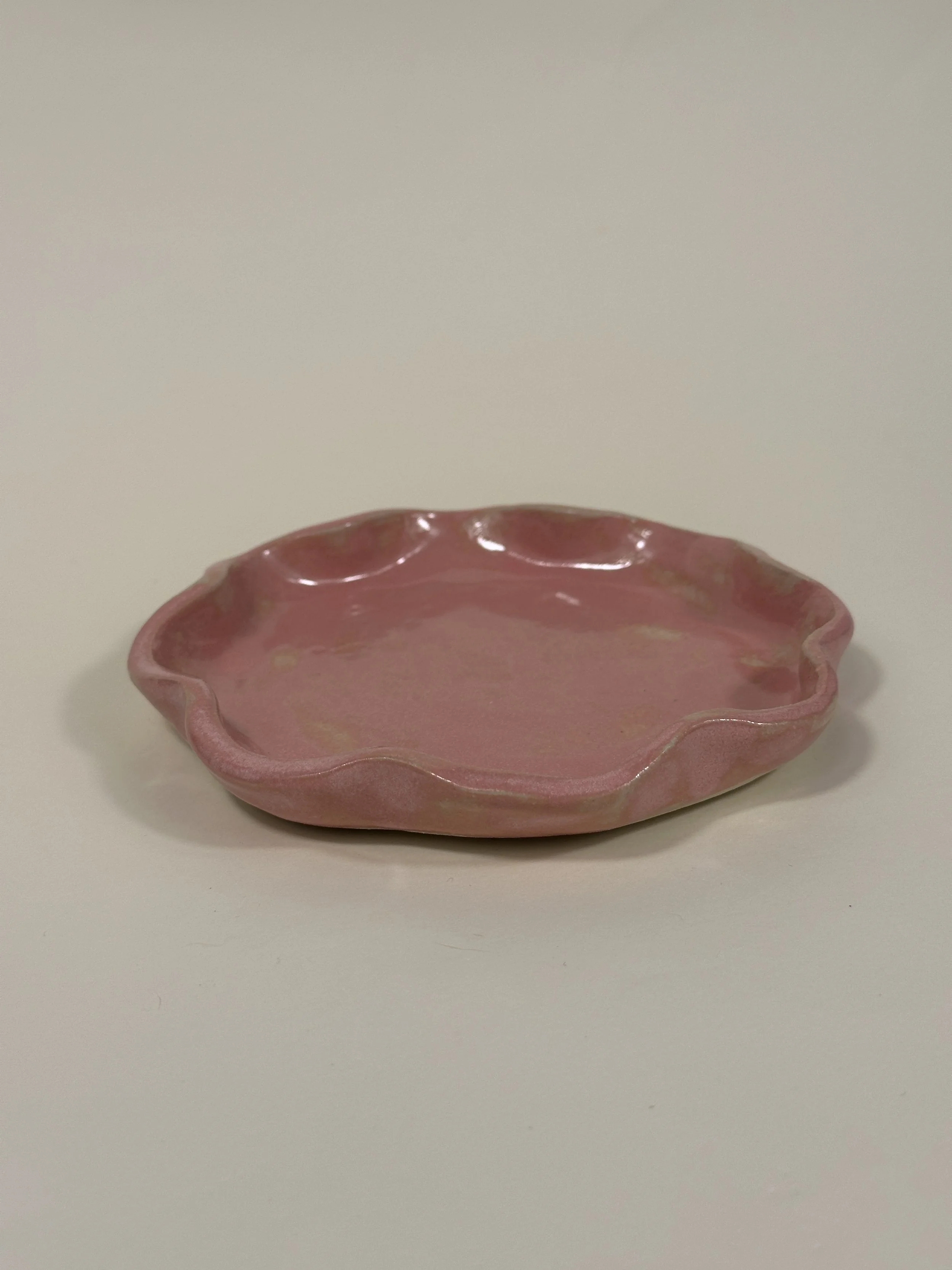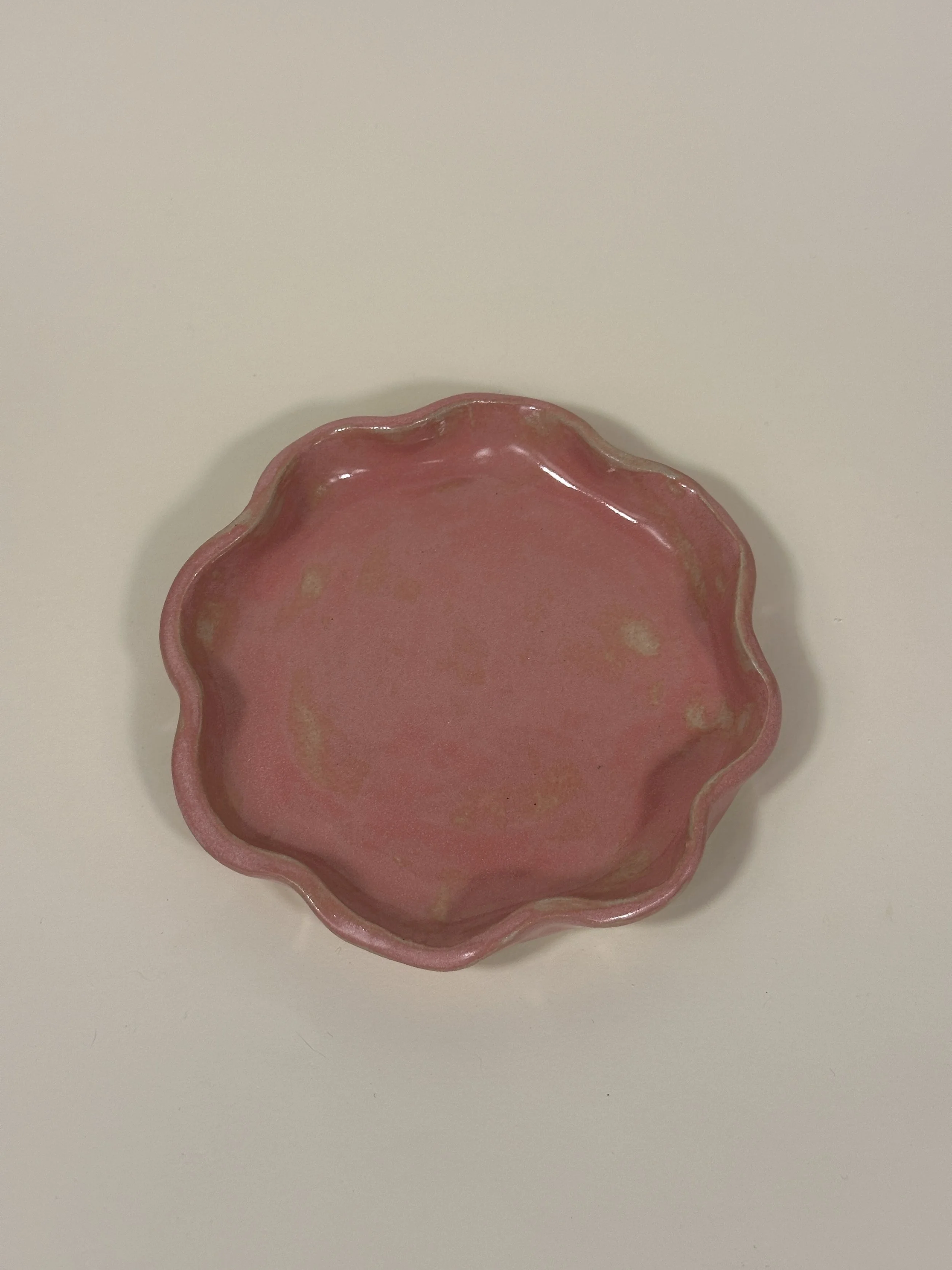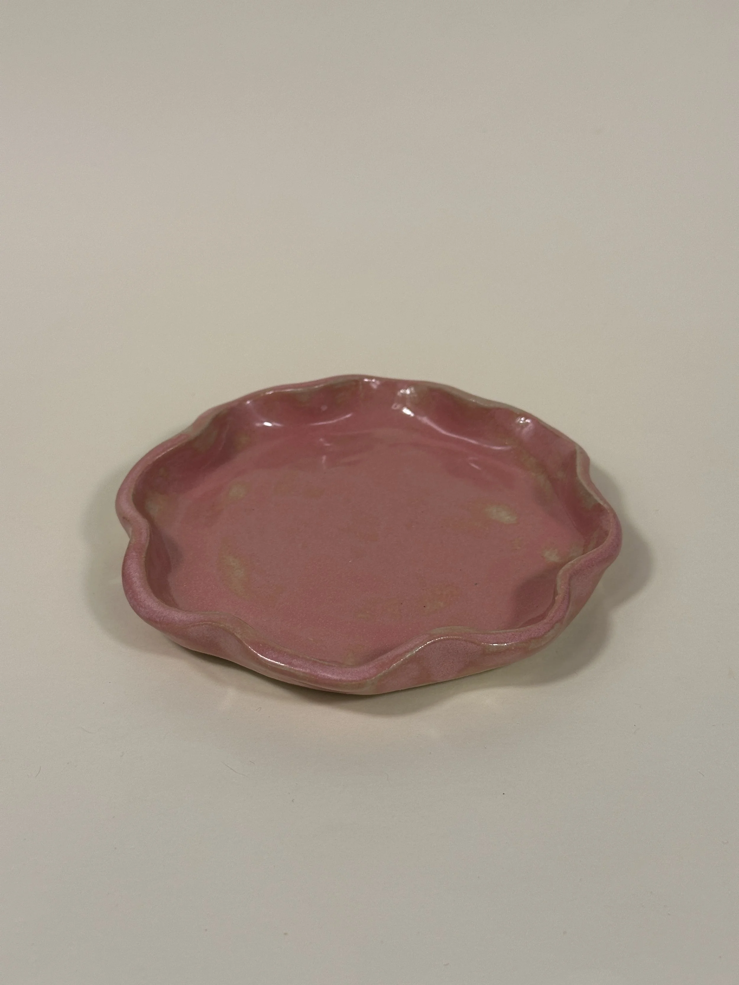 pink speckle trinket dish - wavy